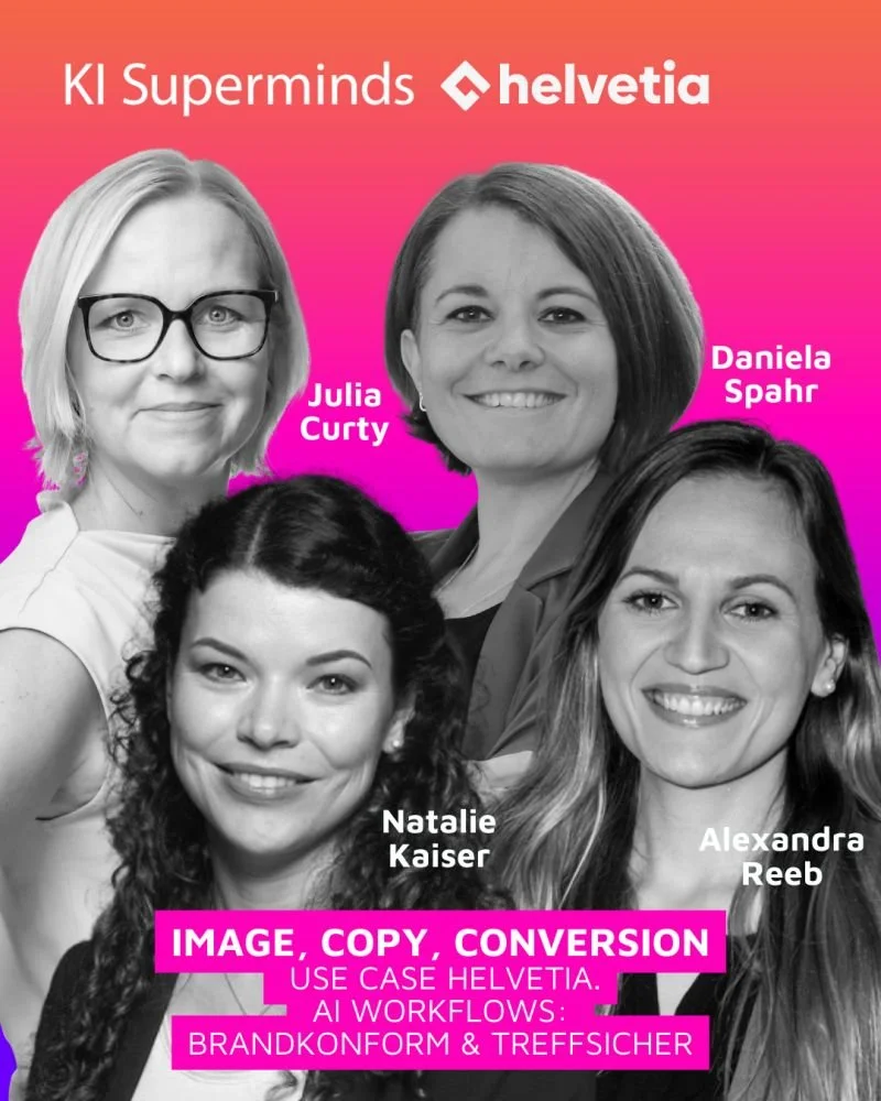 Wie das konkret aussieht, zeigen Daniela Spahr und Julia Curty von KI SUPERMINDS gemeinsam mit Alexandra Reeb und Natalie Kaiser (geb. Wodrich) von Helvetia Baloise Group anhand ihres eigenen Use Cases.